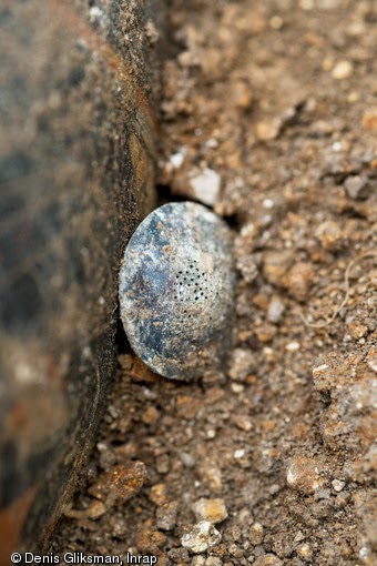 Διακοσμημένος ελληνικός αμφορέας που βρέθηκε μέσα στο χάλκινο σκεύος [Πηγή: © Denis Gliksman / INRAP]